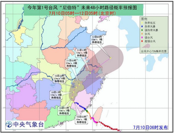 今年第1號(hào)臺(tái)風(fēng)“尼伯特”已于今天(10日)凌晨3點(diǎn)鐘在福建省寧化縣境內(nèi)減弱熱帶低壓,早晨5點(diǎn)鐘其中心位于福建省寧化縣境內(nèi),就是北緯26.1度、東經(jīng)116.5度,中心附近最大風(fēng)力有7級(jí)(16m/s),中心最低氣壓為997百帕。